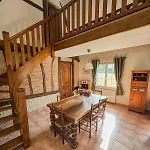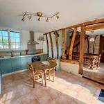 Countryside And Sea In Normandy Villa offers self-catering amenities, such as an equipped kitchenette, and an outdoor dining area for guests' convenience. The kitchen also offers an electric kettle, a fridge, and glassware.